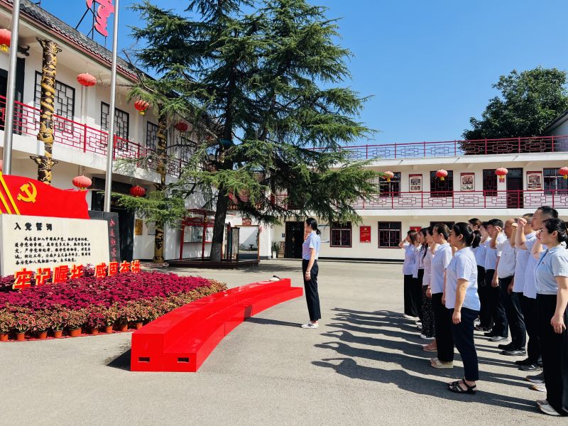 全體人員來到賈汪區(qū)鄉(xiāng)村振興樣板村——馬莊村,在講解員的引導(dǎo)下,追尋習(xí)近平總書記考察足跡,先后參觀了村大院、村史館、黨員活動室、香包工作室及香包文化大院,認(rèn)真聽取了關(guān)于馬莊村的歷史沿革、黨建情況及香包文化等講解介紹。深入了解了馬莊村黨委按照習(xí)近平總書記指示精神,大力實施“一強三帶”工作法,有力推動村級經(jīng)濟蓬勃發(fā)展,村容村貌煥然一新的黨建引領(lǐng)鄉(xiāng)村發(fā)展的成功經(jīng)驗。深刻體會到馬莊村黨委于2021年6月被中共中央評為“全國先進基層黨組織”的集體榮譽感。參觀結(jié)束后,全體人員在馬莊村委會院內(nèi)的黨旗下重溫入黨誓詞,感悟入黨初心。