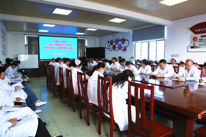10月14日下午,大屯煤電公司中心醫(yī)院召開2024年三季度經(jīng)濟運行分析會暨“對標全年目標,決戰(zhàn)第四季度”誓師大會,總結回顧1-9月份工作情況,分析經(jīng)濟運行情況,安排部署四季度重點工作任務。會議由院黨委副書記、院長張心海主持。院領導班子及護士長以上管理人員參加會議。
