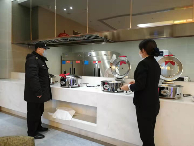 面對疫情不斷升級,酒店黨員干部主動擔當,及時采取有效的防疫措施。一是及時停止對外服務(wù),主動聯(lián)系定餐客戶在征得同意的情況下免費取消各類預(yù)定。二是全面加強停業(yè)期間的安保工作。對于滯留酒店的異地旅客,主動關(guān)心關(guān)懷,提供高品質(zhì)服務(wù)的同時,每日免費測量體溫,贈送口罩,最大程度保障住客的人身安全,排除潛在隱患。三是積極響應(yīng)號召,配合社區(qū)廣泛宣傳疫情防控知識。